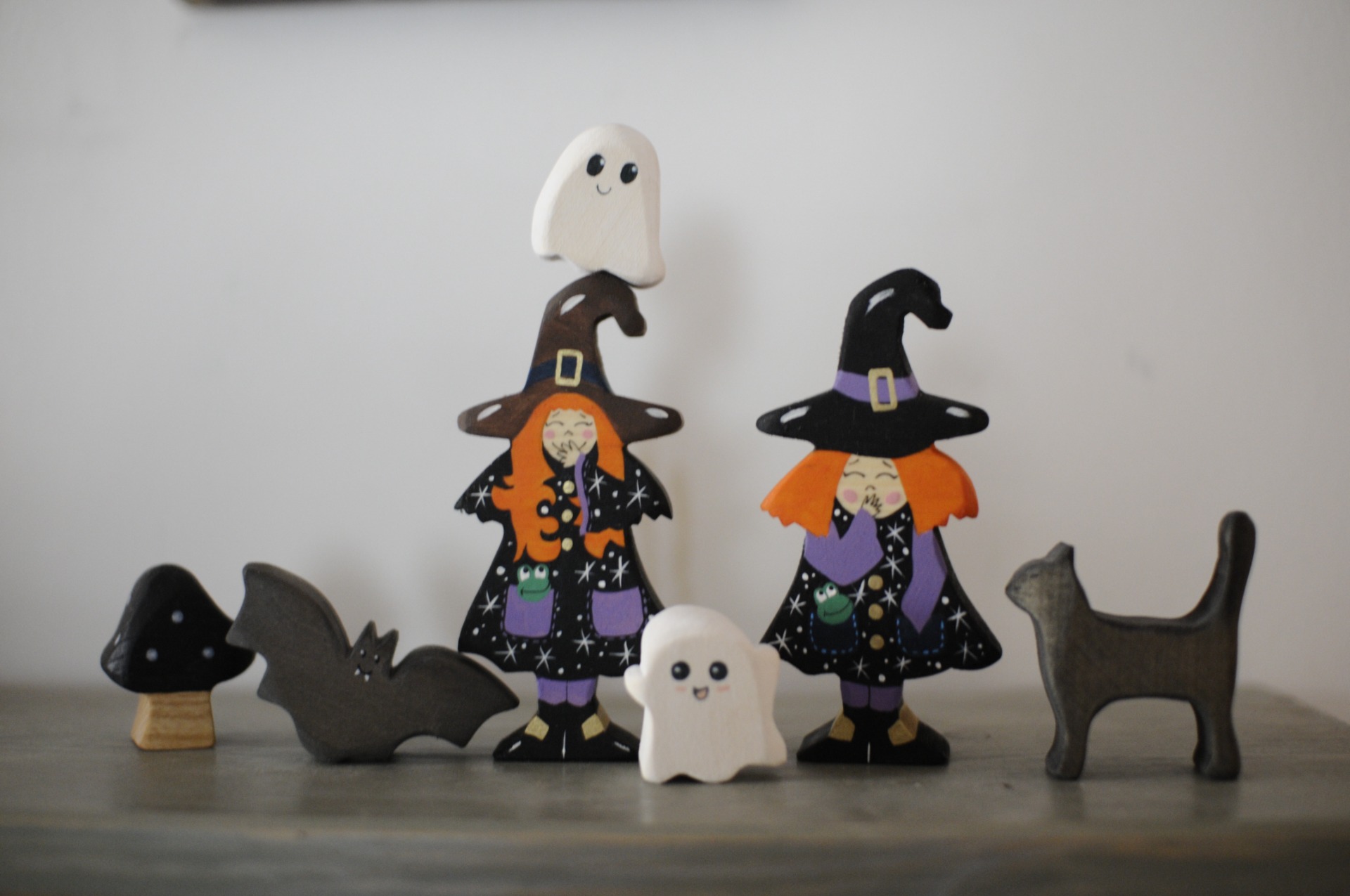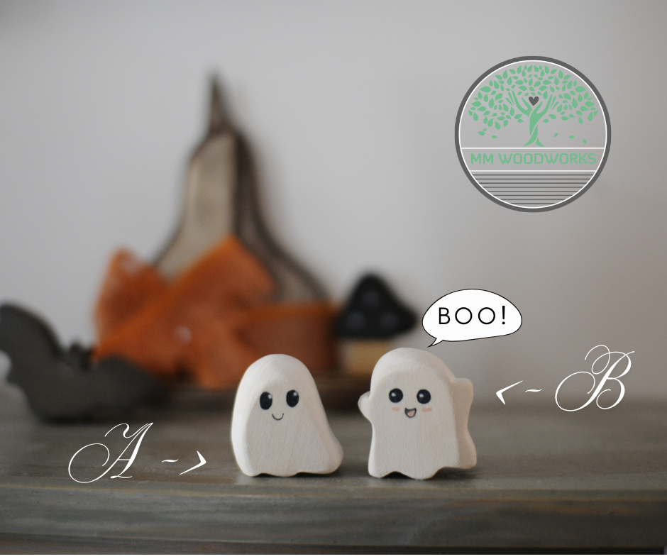 Gömbölyded, cuki, és kevesebb, mint 4 cm, úgyhogy igazán nem rémísztő! (Bármennyire szeretnének azok lanni)Ez a termék a bal oldali, kezecskék nélküli szellemkét jelentiHársfából készült