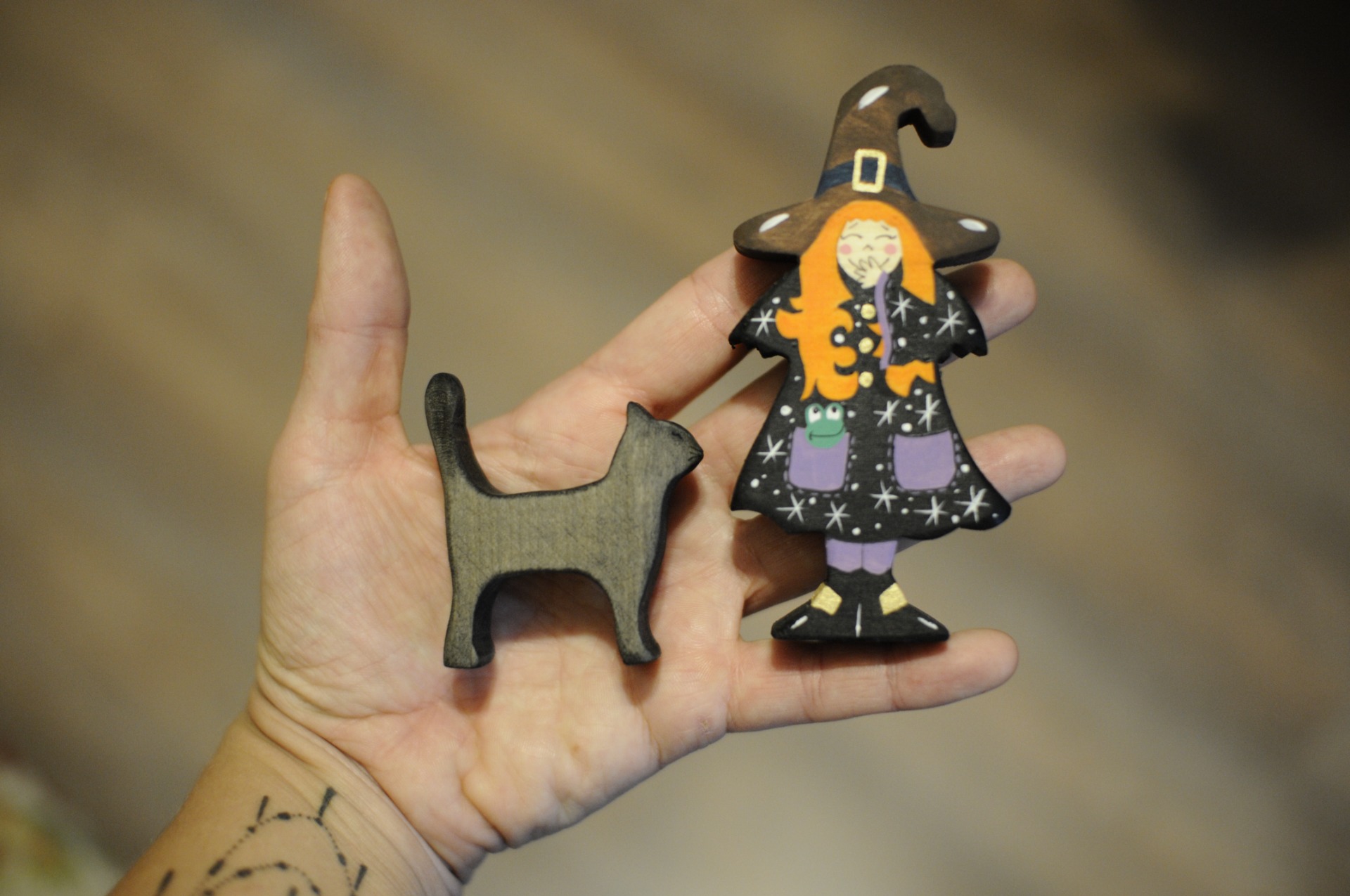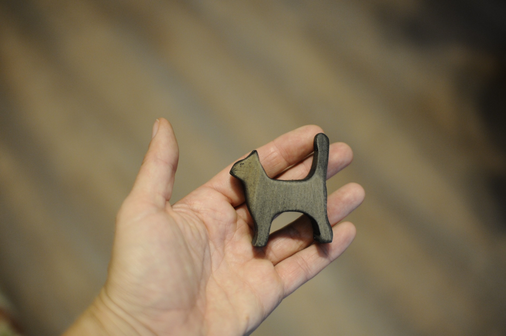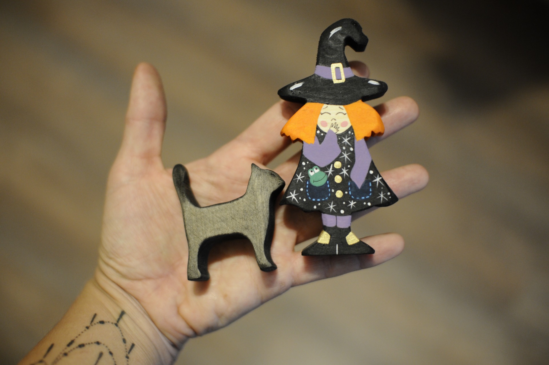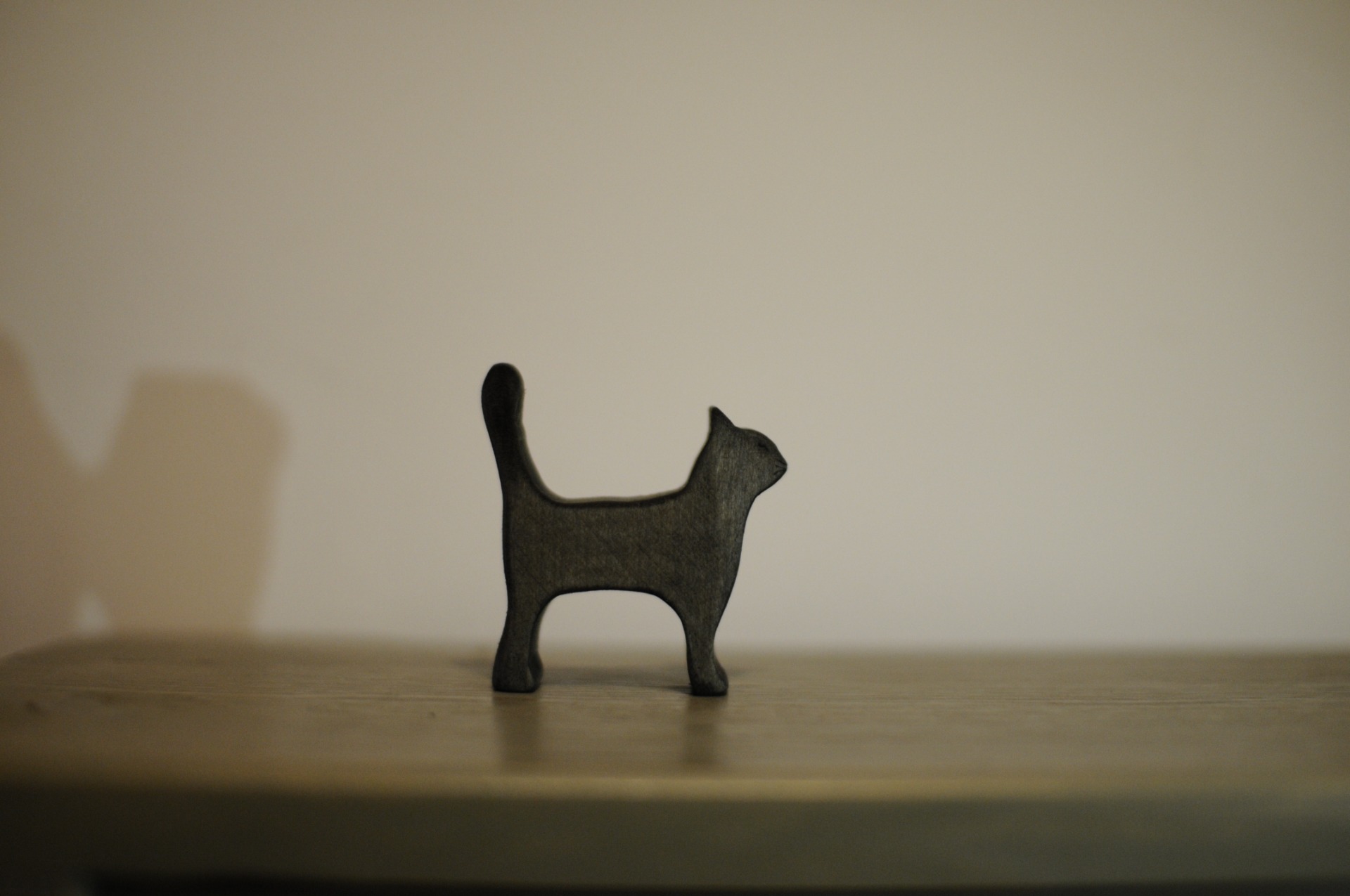 Hársfából készült fekete cicusGyerekbarát festékkel és ugyanígy EN71-3 gyerekbarát szabványnak megfelelő festékkel és felületkezelővel kezeltFarkinca magassága 6 cm