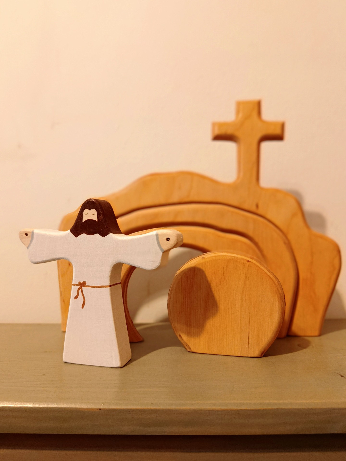 Anyaga: EN71-3-as szabványnak megfelelő viaszos olajjal kezeltek, nedves ronggyal tisztíthatóak, a Szent Sír pedig ugyanúgy gyerekbarát felületkezelővel (félolajjal) fedett.
